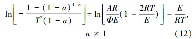 以不同的反應級數n代入式中求解,并進行線性擬合,比較數據的線性,線性越好則說明所選擇的反應機理函數越適合,并由此直線的斜率求得活化能E.