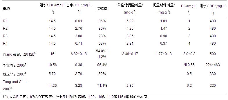 綜上所述,R1具有最佳除磷效果,其除磷性能明顯高于其他反應器,這是由于R1中好氧前期由于氧氣不足,微生物能釋放出較多的聚磷,并將吸收的VFAs大部分用于合成儲能物質PHAs,為好氧吸磷提高能量,而R4則由于氧氣供應充足,系統內DO升高較快,微生物釋磷量少,微生物吸收VFAs主要用于細胞的生長和生成糖原,PHAs合成量較少.由此可見,DO是通過影響O/EI系統的釋磷和吸磷過程以及PHAs合成量,從而影響系統的除磷性能.具體參見污水寶商城資料或http://www.bnynw.com更多相關技術文檔。