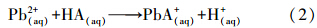 (1)鉛離子首先和溶入水相的HA反應,反應產物為絡離子,該絡離子的親油性比鉛離子強;