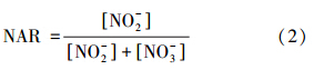 采用美國ABI7500型實時熒光定量PCR系統對反應器中生物膜中的16S rRNA AOB(CTO)、16S rRNA Nitrospira sp.(NSR)進行熒光定量研究,分別用來表征生物膜中氨氧化細菌和亞硝酸鹽氧化菌的含量.CTO前引物序列為CCGGAGGAAAG TAGGGGATCG,后引物序列為CTAGCYTTGTAGTTTCAAACGC(Rotthauwe et al., 1997),NSR前引物序列為CCTGCTTTCAGTT GCTACCG,后引物序列為GTTTGCAGCGCTTTG TACCG(Dionisi et al., 2002).每反應體系20 μL,包括10 μL SYBR Green mix,前引物和后引物各0.4 μL,0.4 μL ROX,6.8 μL無菌水,2 μL DNA模板,每個樣品均重復3次,并添加HPLC級高純水作為陰性對照組,數據采用3次平均值.