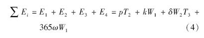 式中,∑Qi為輸入總水量(m3 · a-1),∑Ei為輸出總水量(m3 · a-1).其中,∑Qi可以通過式(3)進(jìn)行計(jì)算,ΣEi可以通過式(4)進(jìn)行計(jì)算.