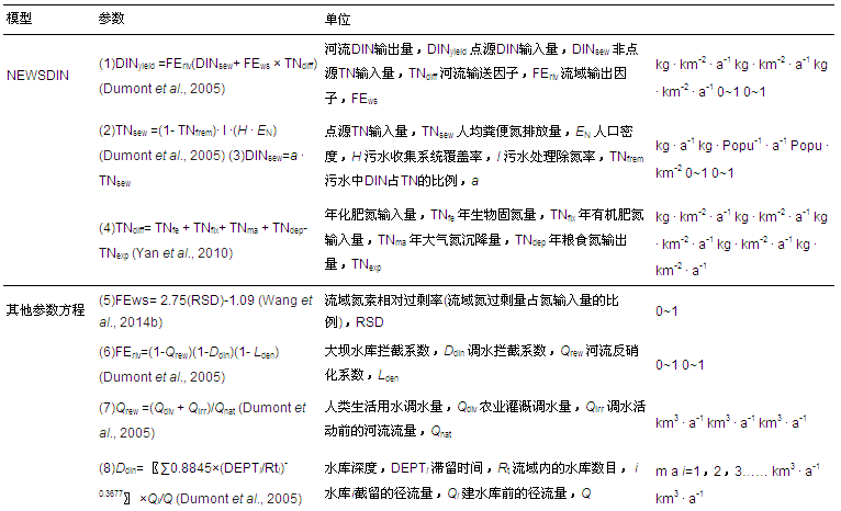 表1 長江流域溶解態(tài)無機氮輸出模型(NEWSDIN)