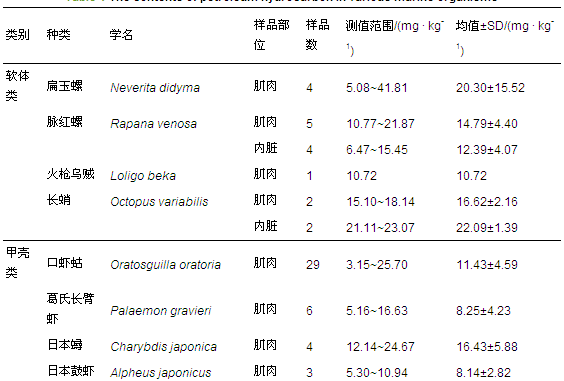 3.1 遼東灣海洋生物體肌肉組織內石油烴含量水平