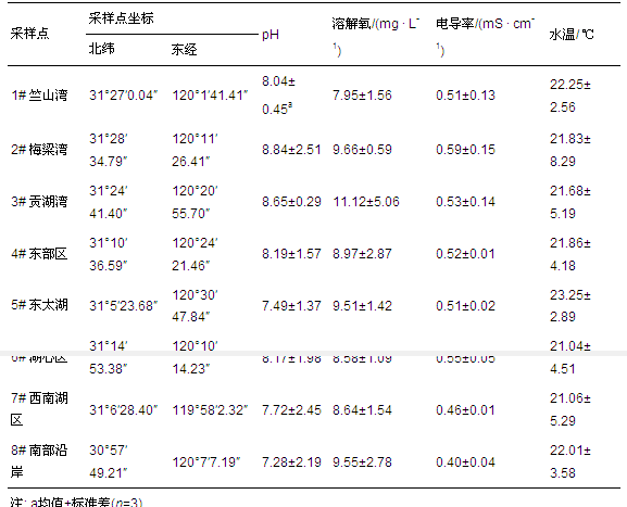 表1 太湖采樣點坐標(biāo)及基本水質(zhì)參數(shù)