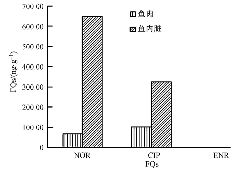 圖4 鳊魚魚肉和內臟中FQs的濃度 |