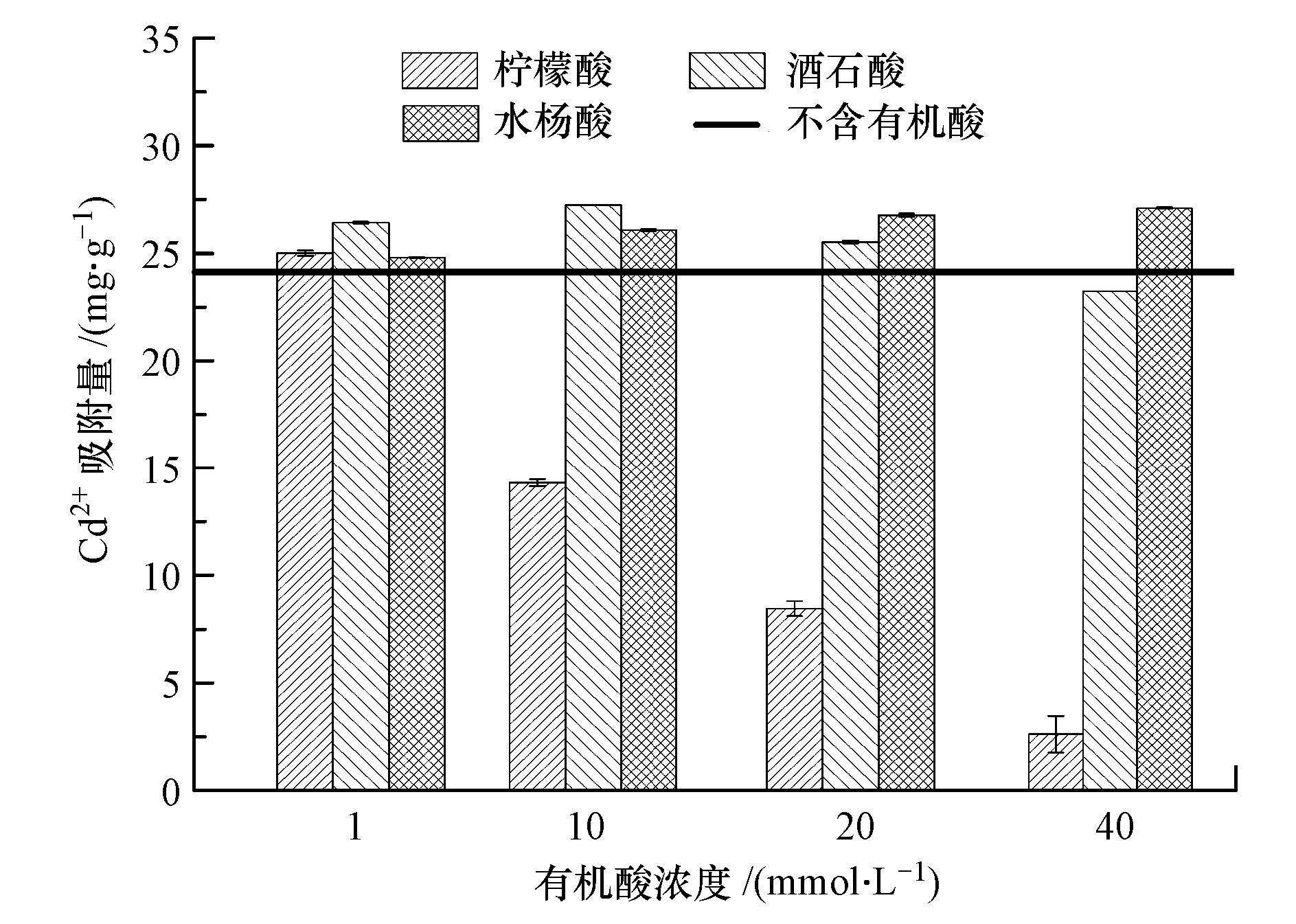 圖6 低分子量有機(jī)酸對Cd2+吸附的影響