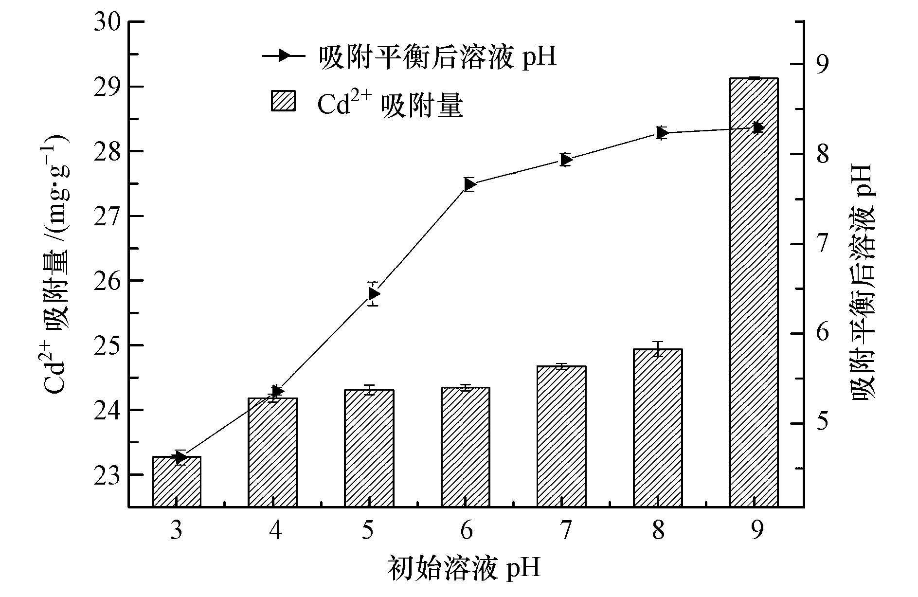 圖4 初始溶液pH對FARs吸附Cd2+的影響和吸附平衡后溶液pH
