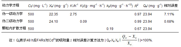 表2 FARs吸附Cd2+的動力學(xué)模型擬合結(jié)果