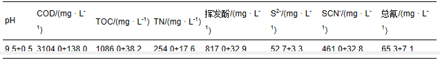 表1 焦化廢水主要水質指標