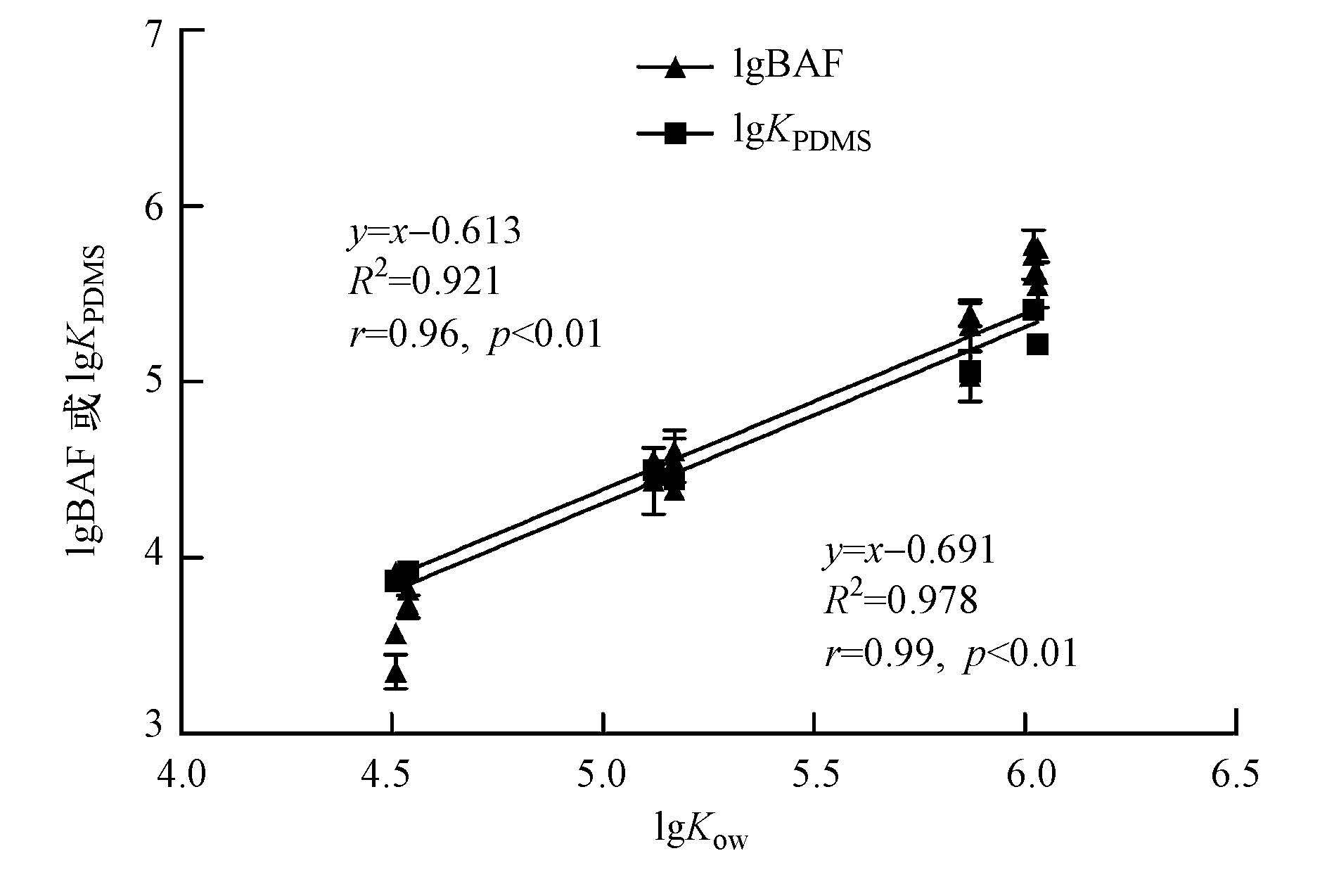 圖1 lgKow與lgBAF和lgKPDMS的關系