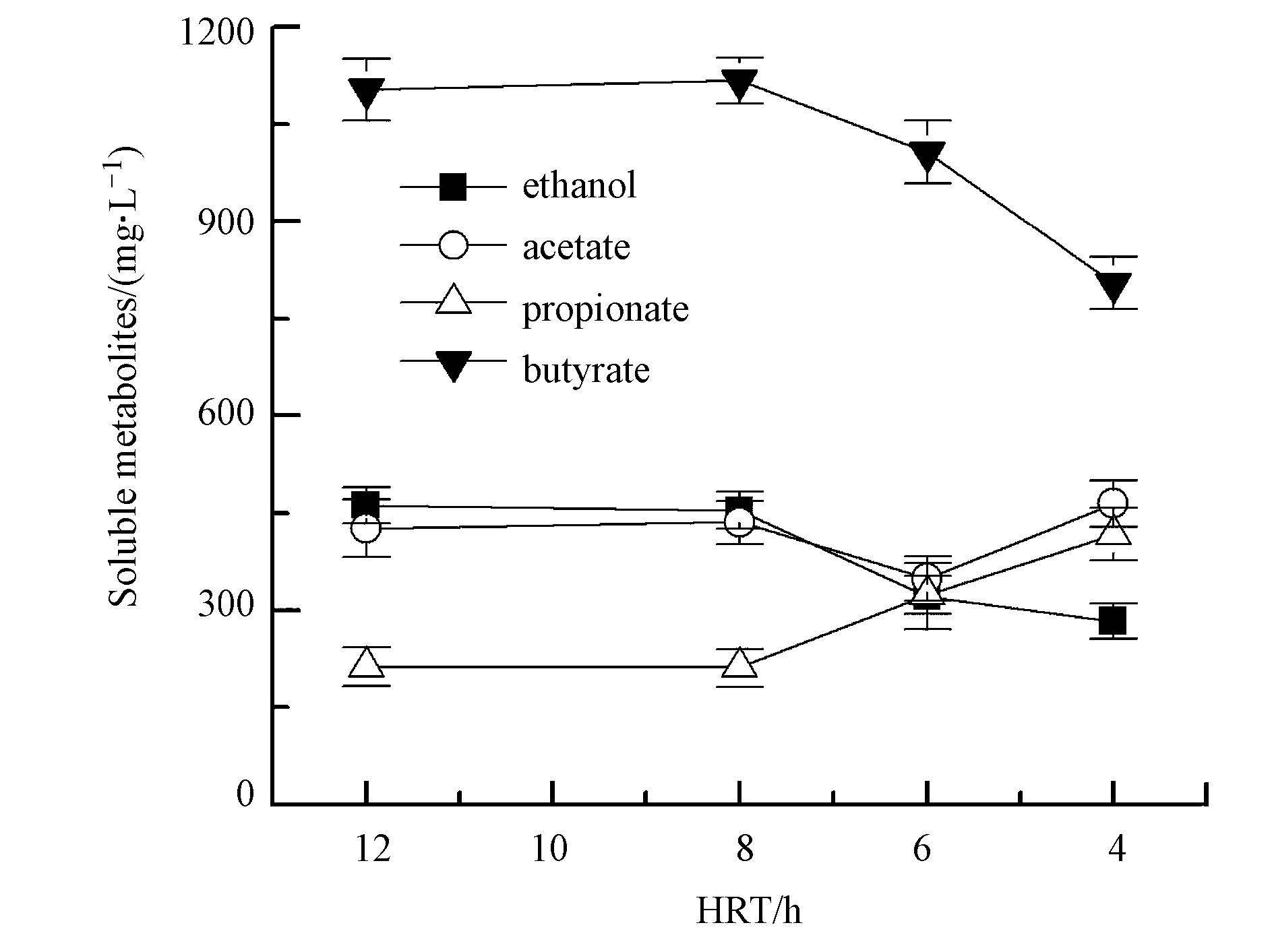 圖5 ACR丁酸型發(fā)酵在不同HRT下溶解性發(fā)酵產(chǎn)物