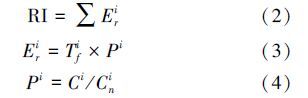 潛在生態風險評價法是瑞典科學家Hakanson提出的一種能準確反映出水體中沉積物重金屬含量和潛在毒性危害的常用指標(Hakanson et al., 1980;李蓮芳等,2007;Pekey et al., 2004;Sanka et al., 1995).本文采用此 方法研究閩江福州段和城市內河表層沉積物中重金屬的污染系數和潛在危害.具體公式如下: