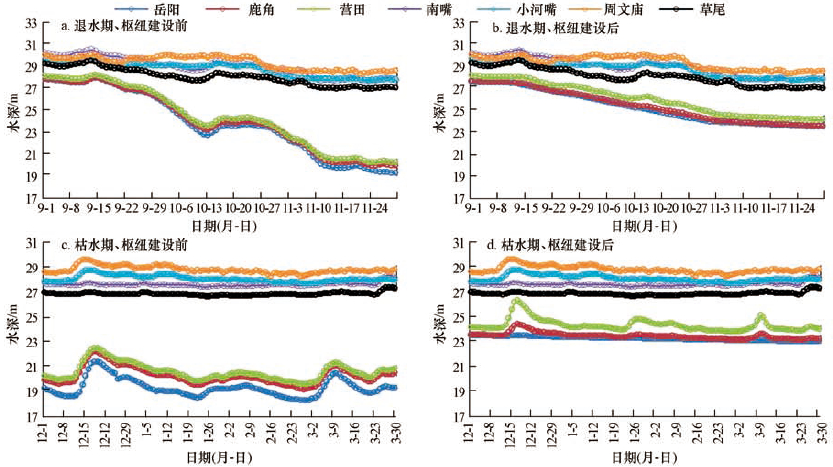 圖 3 城陵磯綜合樞紐建設前后洞庭湖退水期、枯水期水位對比