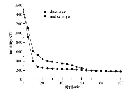圖 9表明了鎢酸鉍的沉降效果,放電結束80 min后,鎢酸鉍的自然沉降率達到85%以上,說明鎢酸鉍具有良好的沉降效果.從圖 9還可看出,在自然沉降60 min之前,放電后的催化劑沉降速率較放電前略緩,這說明了等離子放電可能在一定程度上改變了催化劑物理特性,增大了顆粒在水體中的浮力,增加了沉降時間.