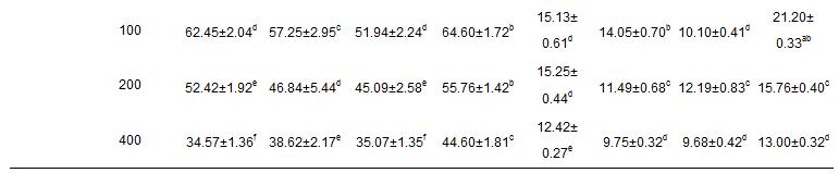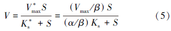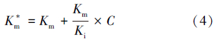 式中,Vmax* 為抑制劑存在時酶表觀最大速率(μg·g-1·h-1);KS*為酶-底物表觀解離常數(shù)(mmol·L-1).對于線性混合型抑制,V*max=Vmax/β,Ks*=(α/β)Ks;其中: