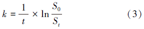 土壤酶促反應速度常數(shù)k計算如下(和文祥等,2001):