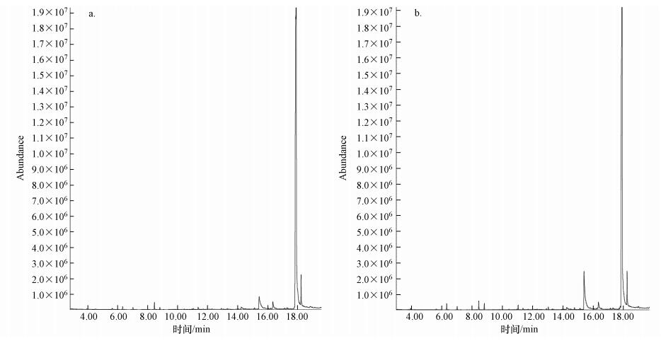 圖 4 穩(wěn)定運(yùn)行階段周期末MFC-I(a)和MFC-M(b)陽極脫色產(chǎn)物氣相色譜圖