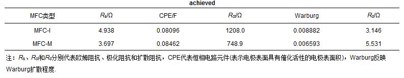 表1 穩(wěn)定運(yùn)行階段最大電壓時(shí)MFC-I和MFC-M陽極的內(nèi)阻分析