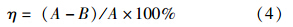 式中,A為初始吸光度,B為測試樣品吸光度.