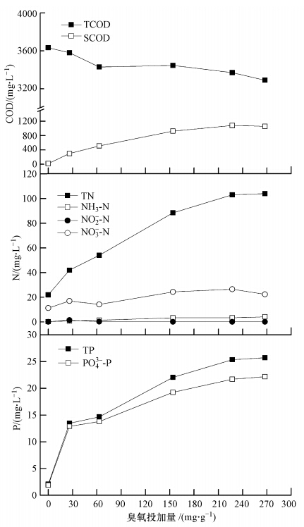 3.1.2 臭氧投加量對污泥中COD、氮、磷溶出的影響