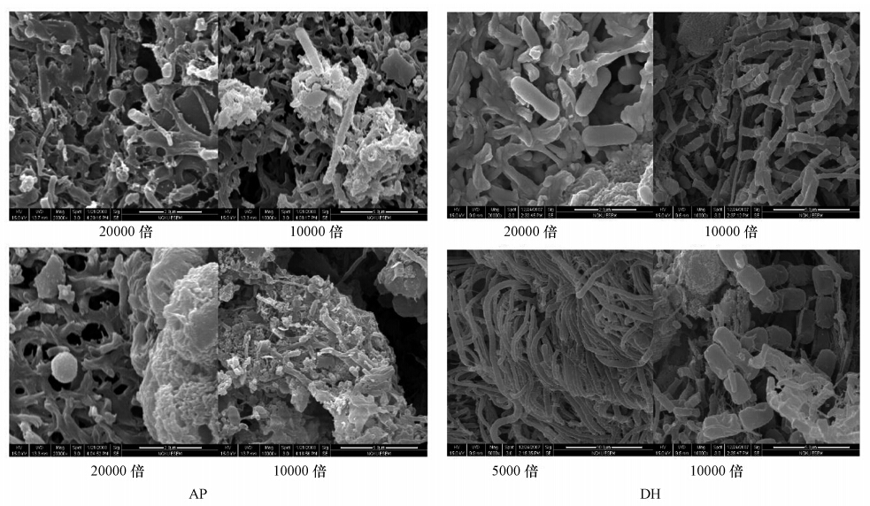 圖 4 AP和DH厭氧污泥SEM鏡檢