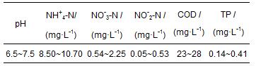 試驗檢測的主要水質指標測定方法如下:NH+4-N采用靛酚藍比色法,NO-3-N采用紫外分光光度法,NO-2-N采用N-(1- 萘基)-乙二胺光度法,COD采用分光光度法,TP采用過硫酸鉀消解-紫外分光光度法,pH采用PB-10型數顯pH計檢測.