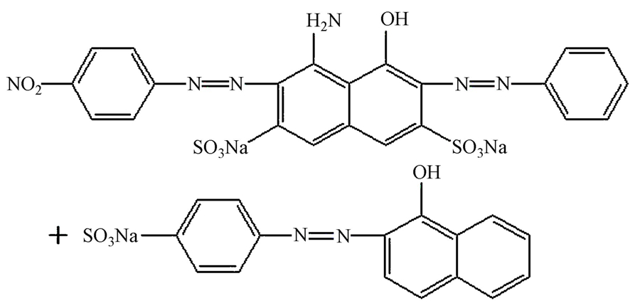 紡織印染廢水中成分復雜,含有多種染料、紡織助劑、鹽類、表面活性劑、紡織品降解物等,而目前漆酶脫色研究主要集中于對單種染料的降解.酸性黑ATT(圖 1)屬于一種復合的偶氮染料,由酸性黑10B和酸性橙Ⅱ按照70 ∶ 30比例調合而成,常用于毛、絲、棉綸及其混紡織物的染色,是一種代表性的復合染料.本研究利用Ganoderma lucidum wz-32所產漆酶催化酸性黑ATT脫色的條件,同時考慮到漆酶的催化作用會受到金屬離子、酶抑制劑和催化助劑的影響,研究了一些金屬離子和化學試劑對脫色的影響,以期為漆酶在復合染料廢水脫色處理領域的深入研究及工業化應用提供基礎.