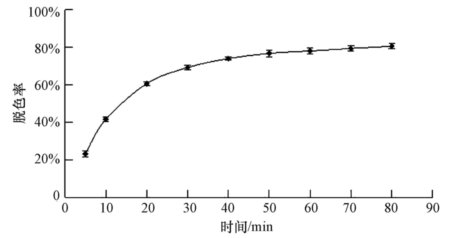 圖 2 漆酶催化酸性黑ATT脫色隨時間的變化
