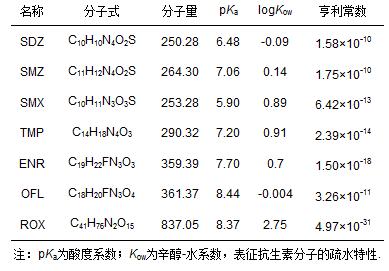 抗生素類藥物在環(huán)境中的遷移轉(zhuǎn)化等過程都與抗生素物質(zhì)的物理化學性質(zhì)相關.表 3為實驗中幾種抗生素的物理化學性質(zhì).