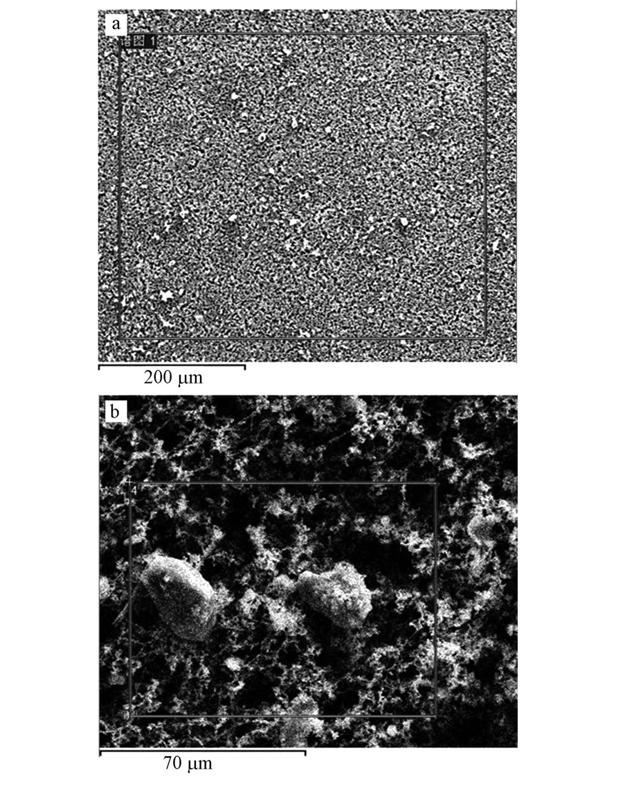圖 1 天然水體中顆粒物掃描結(jié)果(a.100倍,b.5000倍)