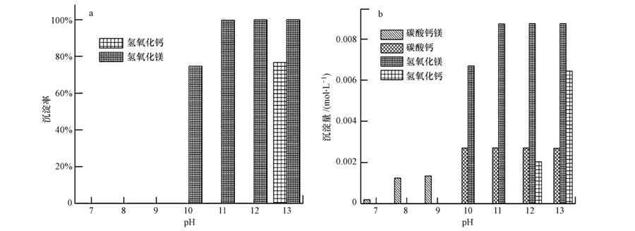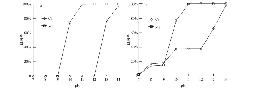 圖 3 不同pH值下,無CO2-3(a)與有CO2-3(b)的沉淀情況對比