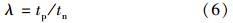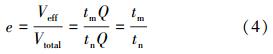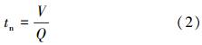 理論上潛流人工濕地水流以活塞流形式通過人工濕地主體填料,水流質(zhì)點(diǎn)具有相同的停留時間,能夠在相同時間內(nèi)到達(dá)濕地出水口,即為表觀停留時間tn,計(jì)算如式(2)所示,停留時間分布曲線的重心位置定義為平均水力停留時間tm(式(3)).氯化鈉示蹤劑最高濃度出現(xiàn)的時間定義為示蹤劑峰值的停留時間tp.