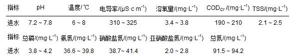 系統所選植物為除污能力強的常見濕地植物美人蕉(Canna generalis)和菖蒲(Acorus calamus),在2012年4月份種植于人工濕地反應器中,種植密度為8株 · m-2,濕地植物生長狀況良好,已完全遮蓋基質表面,根系發達,至實驗時為止,該系統已穩定運行半年時間.系統進水參數見表 1.