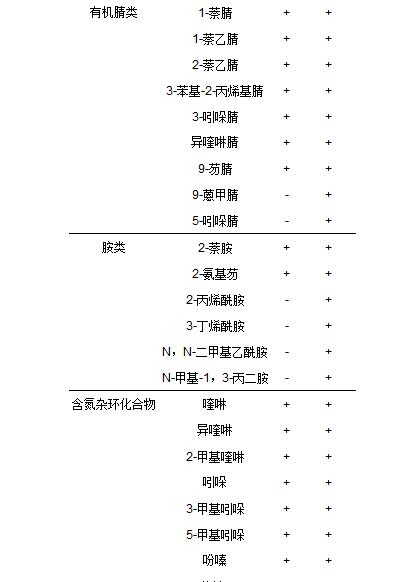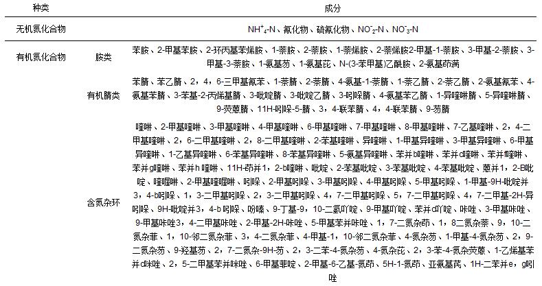 表4 焦化廢水生物出水中有機氮化合物的存在情況