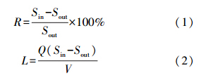 式中,R為去除率,Sin、Sout分別代表進水濃度和出水濃度(mg · L-1),L為去除負荷(g · m-3 · d-1),Q為平均進水流量(m3 · d-1),V為反應池容積(m3).
