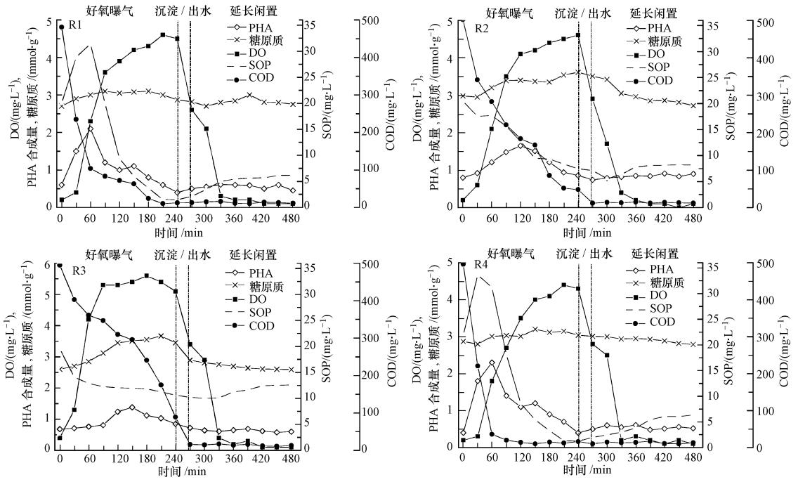 3.3 典型周期內SOP、DO、COD、PHA及糖原質的變化