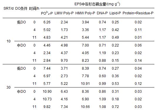 表3 不同SRT和DO條件下EPS中各形態(tài)磷含量
