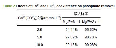 表2 Ca2+與CO2-3共存對(duì)磷去除的影響