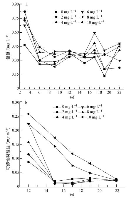 3.3.4 氨氮和可溶性磷酸鹽隨時間的變化情況