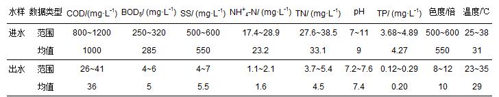 UASB反應池的外形尺寸為16 m×16 m×14 m(長×寬×高),為鋼筋混凝土結構,共2座,有效水深8.5 m,三相分離區3.0 m,布水區1.5 m,超高0.5 m,水力停留時間8.0 h.系統穩定運行后,廢水通過UASB反應池,其污染物的去除率如表 2所示.