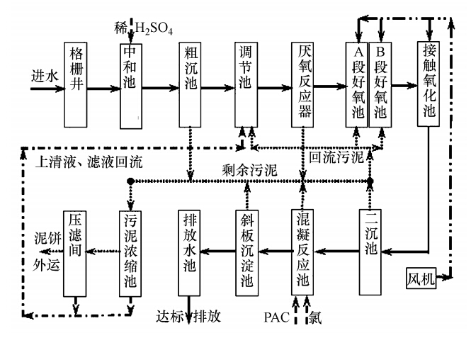 近年來,由于化纖織物的發展和印染后整理技術的進步,使大量PVA漿料、新型助劑等難生化降解的有機物進入印染廢水,這給生化處理增加了難度.而水解酸化的目的是針對印染廢水中這類可生化性很差的一些高分子物質,期望它們在厭氧段轉化為小分子物質,從而改善廢水的可生化性,為后續處理創造條件.