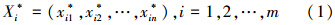 式中,n為待評價(jià)因素的樣本個(gè)數(shù);m為待評價(jià)對象的指標(biāo)個(gè)數(shù).