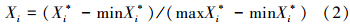 1)對影響水質(zhì)狀況的各評價(jià)指標(biāo)進(jìn)行數(shù)據(jù)歸一化預(yù)處理,從而消除指標(biāo)的量綱并統(tǒng)一指標(biāo)的變化方向.