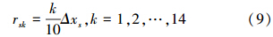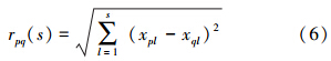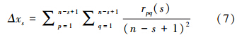3)分別計(jì)算上述1~7維相空間兩點(diǎn)之間的距離rpq(s)與平均距離Δxs,計(jì)算公式為: