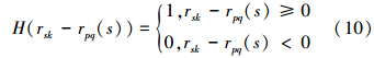 式中,rsk為指定的距離上限,k一般取相空間維數(shù)ω的2倍,H為Heaviside函數(shù),其值分別由下式確定: