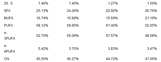 表3 利用豬場(chǎng)養(yǎng)殖污水培養(yǎng)的狹形小樁藻藻細(xì)胞脂肪酸含量
