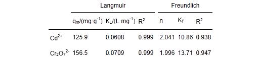 表 1 AN-SBA-15吸附Cd2+和Cr2O72-等溫模型擬合參數
