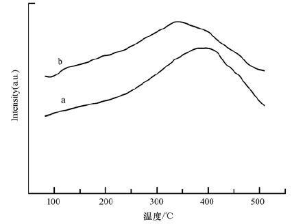 圖 5介孔材料的NH3-TPD曲線(a. A-SBA-15; b. AN-SBA-15)