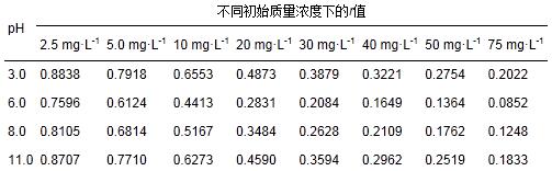 表 4 不同pH條件下各初始質(zhì)量濃度的r值