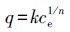 為了進一步確定吸附劑和吸附質(zhì)之間的相互作用和吸附機理,本研究采用了兩種模型對吸附等溫線進行擬合分析,分別是Langmuir單層吸附模型(式(4))和Freundlich經(jīng)驗?zāi)P?式(5)).